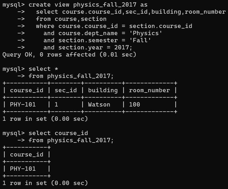 1 | -- 创造物理系在2017年秋季开设的所有课程信息视图 |