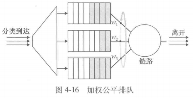类似循环排队,但是每个类根据自身情况会被分配到一个权值,调度器根据权值决定传输的带宽份额