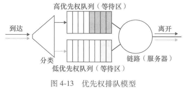 根据优先级将分组分配到不同的队列,调度器优先从队列非空的最高优先权中选择一个分组传输,同一优先级队列中选择FIFO方式