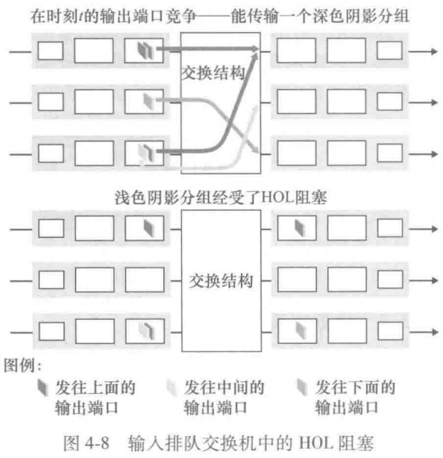 - 队列头部阻塞(Head-of-Line Blocking, HOL):排在前面的分组阻塞了后续分组的处理